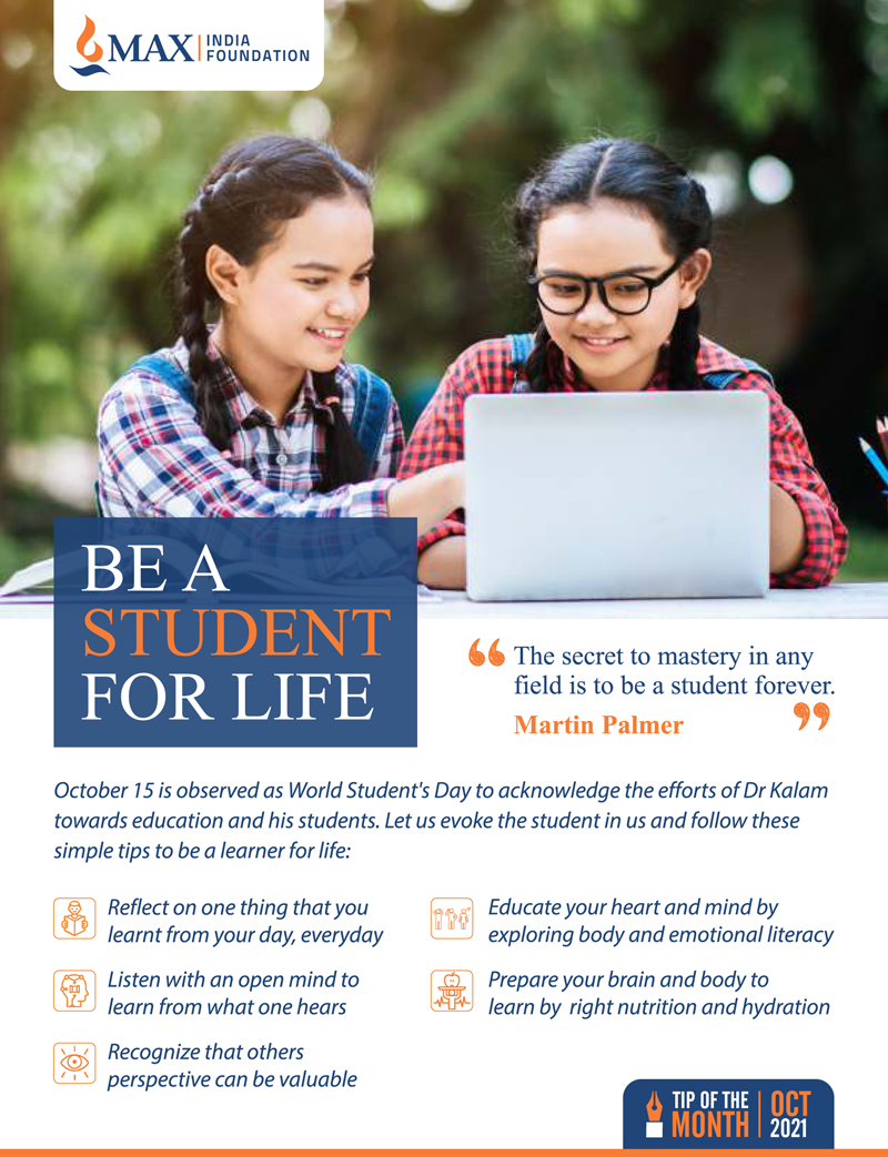Be a Student for life, October 15 is observed as World Student’s Day to acknowledge the efforts of Dr Kalam……..