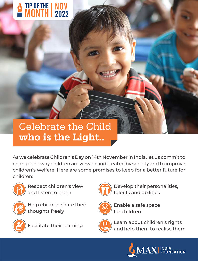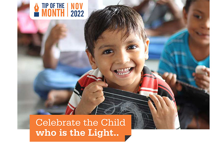 Celebrate the Child who is the Light…As we celebrate Children’s Day on 14th November in India, let us commit…….