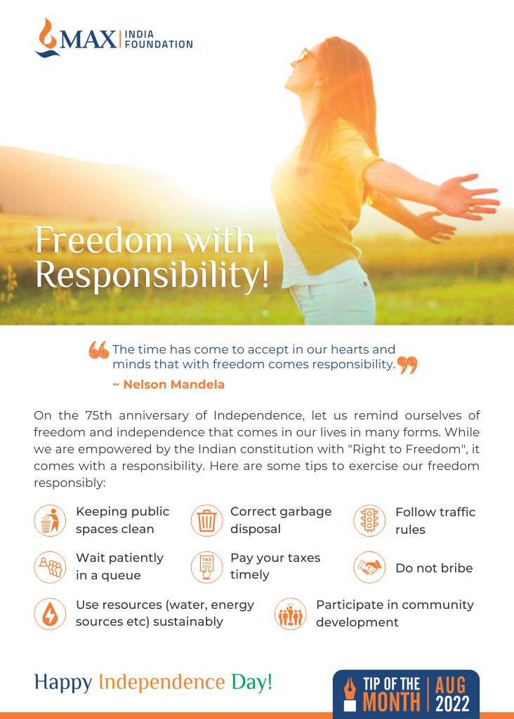 On the 75th anniversary of independence, let us remind ourselves of freedom and independence the comes in our lives in many forms…….