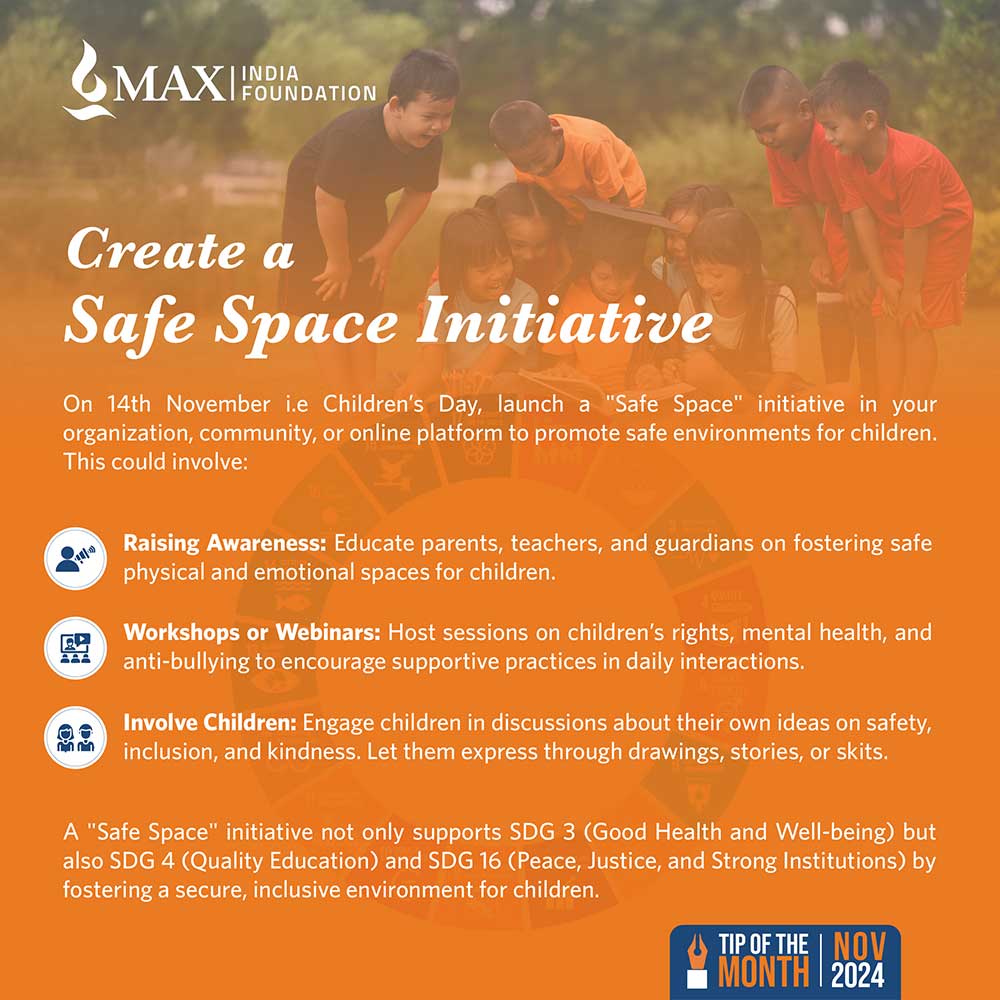 Create a Safe Space Initiative. On 14th November i.e. Children’s Day, launch a “Safe Space” initiative in your organization, community, or online platform to promote safe environments for children….