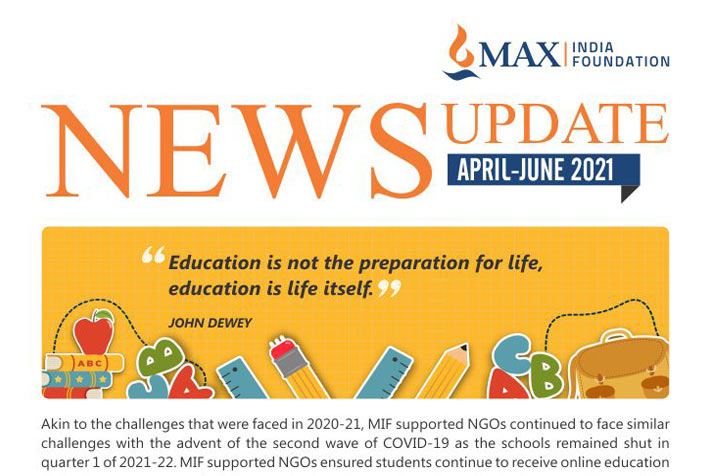 Newsletter Home > Our Updates > Newsletter 2021 Menu Select Year Newsletter 2023 Newsletter 2022 Newsletter 2021 Newsletter 2020 Newsletter 2019 Newsletter 2018 Newsletter 2017 Newsletter 2016 Newsletter 2015 Newsletter 2014 22 JAN Oct, Nov, Dec 2021 As the calendar year comes to a close, we want to take a moment to express…. Click to view 23 oct July, Aug, Sep 2021 As the COVID puzzle is yet to be solved across the globe, the Indian Journal…. Click to view 22 July Apr, May, June 2021 Akin to the challenges that were faced in 2020-21, MIF supported NGOs continued…. Click to view 26 April Jan, Feb, March 2023 In the final quarter of the year, students appeared for their final exam….. Click to view Archive Newsletters Click to View Archives