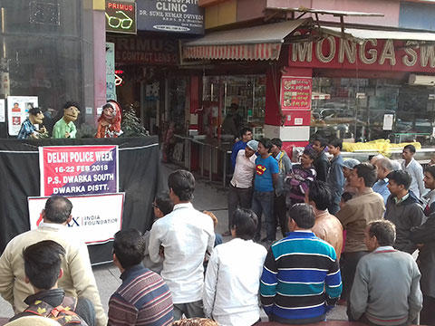 was jointly organised by MIF, Delhi Police and Sambandh Healthcare Foundation at Dwarka sector 6 and 23 and Jawahar Chowk Nazafgarh on 16th Feb. Puppeteers from Kayakalp sensitised approx 500 people on the tobacco menace.