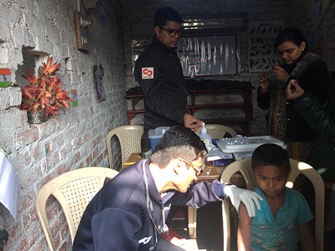 100 children from the rag pickers community were administered typhoid vaccine at the Immunization camp organised in partnership with NGO Shristhi, Jai Hind Camp, Masoodpur village in Delhi on 25th January 2018.